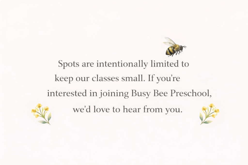 Busy Bee Preschool grew out of a desire to offer families a small, thoughtful preschool option where children are known, supported, and encouraged every day.